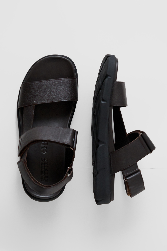 Новаторские мужские босоножки, обладающие превосходными вентиляционными и амортизирующими свойствами. Легкая и гибкая амортизирующая подошва из материала EVA обеспечивает воздухопроницаемость благодаря применению запатентованной технологии Geox. Прочная и легкая стелька из полиуретана с покрытием из кожи дарит постоянное ощущение сухости и комфорта. Подкладка также оснащена кожаным покрытием. Стелька дополнена системой Ventilated Cushioning System, которая обеспечивает воздухопроницаемость, вентиляцию и амортизацию и гарантирует непревзойденный комфорт.  Застежка на два ремешка с липучкой позволяет регулировать плотность посадки в подъеме. Насечки на протекторе повышают гибкость обуви и поддерживают естественные движения стопы.