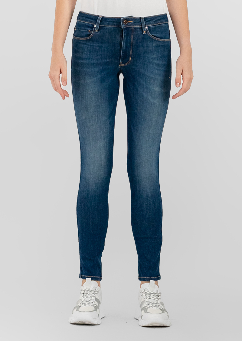 Средняя посадка, облегающая брючина по всей длине.