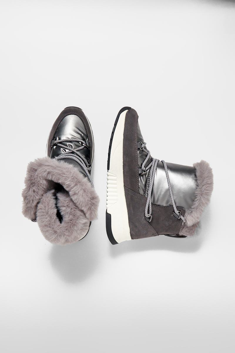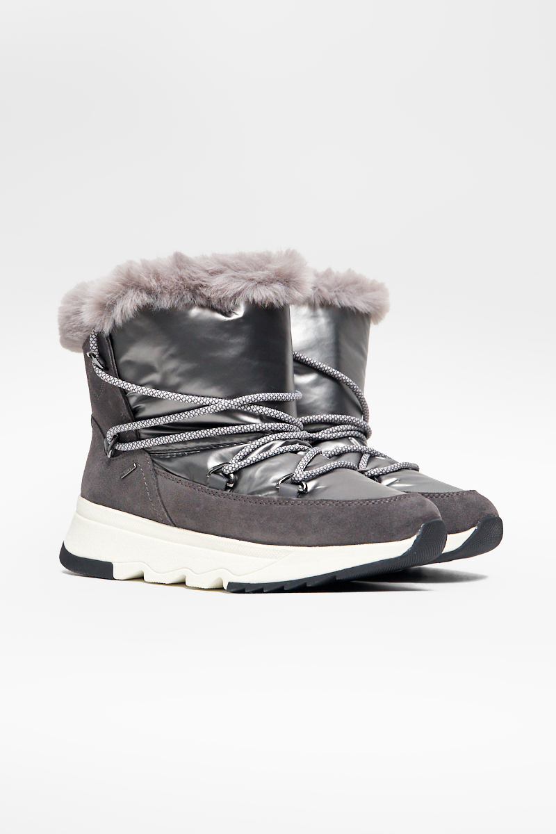 Теплые и совершенно непромокаемые женские ботинки Falena ABX идеальны для зимних условий. Из замши и нейлона. Подошва в стиле беговой обуви. Модель идеально подходит для неформальных мероприятий, от активного отдыха до повседневных прогулок.